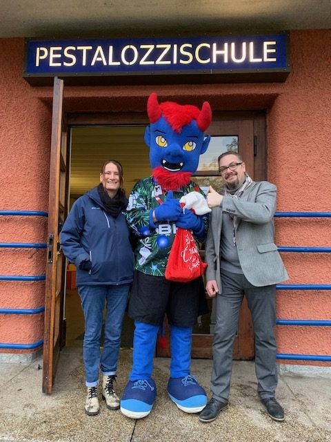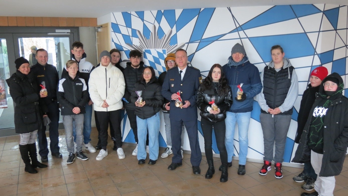 In der vorweihnachtlichen Zeit backten die Teilnehmenden der Praxisklasse Plätzchen für den Kooperationspartner, die Polizeiinspektion in Weiden. Gemeinsam mit Sozialpädagogin Frau Strempel, dem Klassenlehrer Herrn Benker und der Fachoberlehrerin Frau Schwienbacher- Muth planten die Schüler*innen das Projekt. Zehn verschiedene Sorten wurden von der Klasse an zwei Tagen angefertigt und in kleine Päckchen verpackt. Es machte den Schüler*innen nicht nur Spaß, auch das Gruppengefühl der Klasse wurde gestärkt und zugleich konnten auch mathematische Kenntnisse eingesetzt werden. Am 19. Dezember übergaben die Mädchen und Jungen der Praxisklasse dem Polizeidirektor Herrn Markus Fuchs, dem Jugendkontaktbeamten Manuel Ott und dem Polizeisprecher Mario Schieder die „süße Überraschung“.